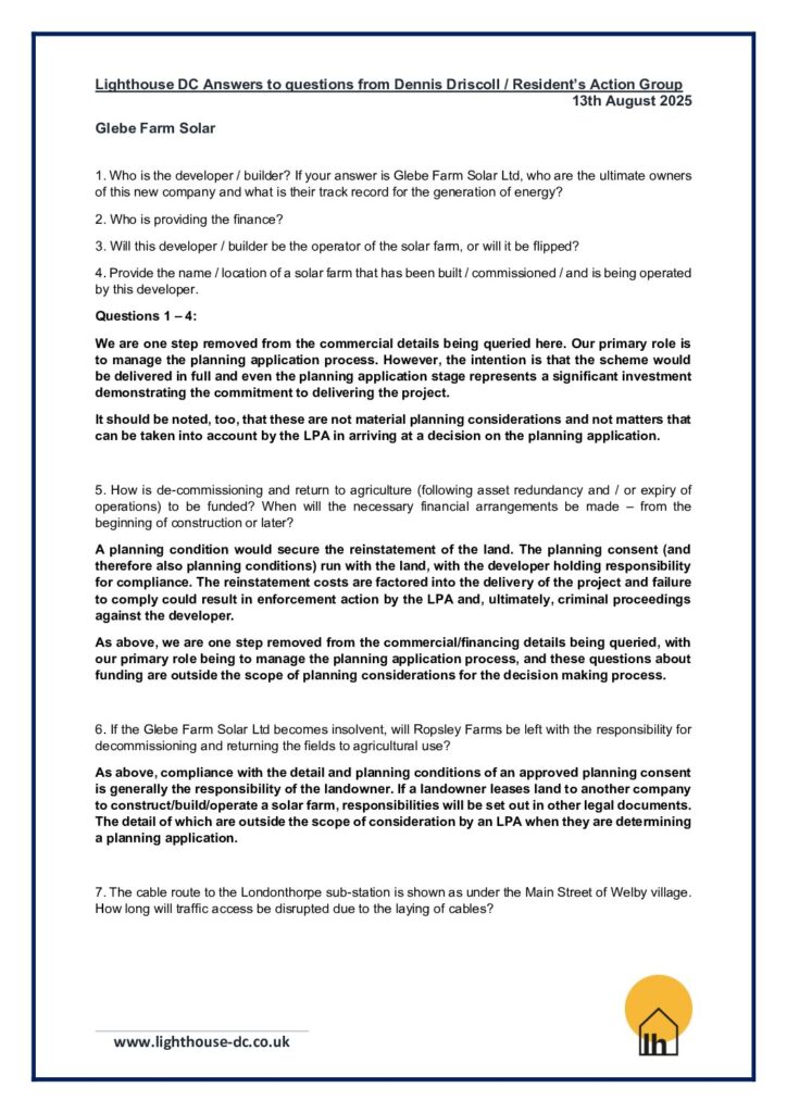 Lighthouse DC replies to R.A.G. questions